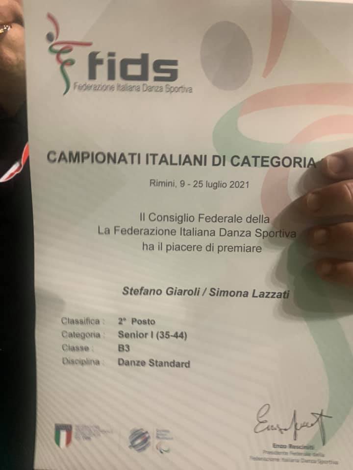 - Stefano e Simona vice-campioni italiani di danze standard nella categoria Senior 1 (35-44 anni), classe B3